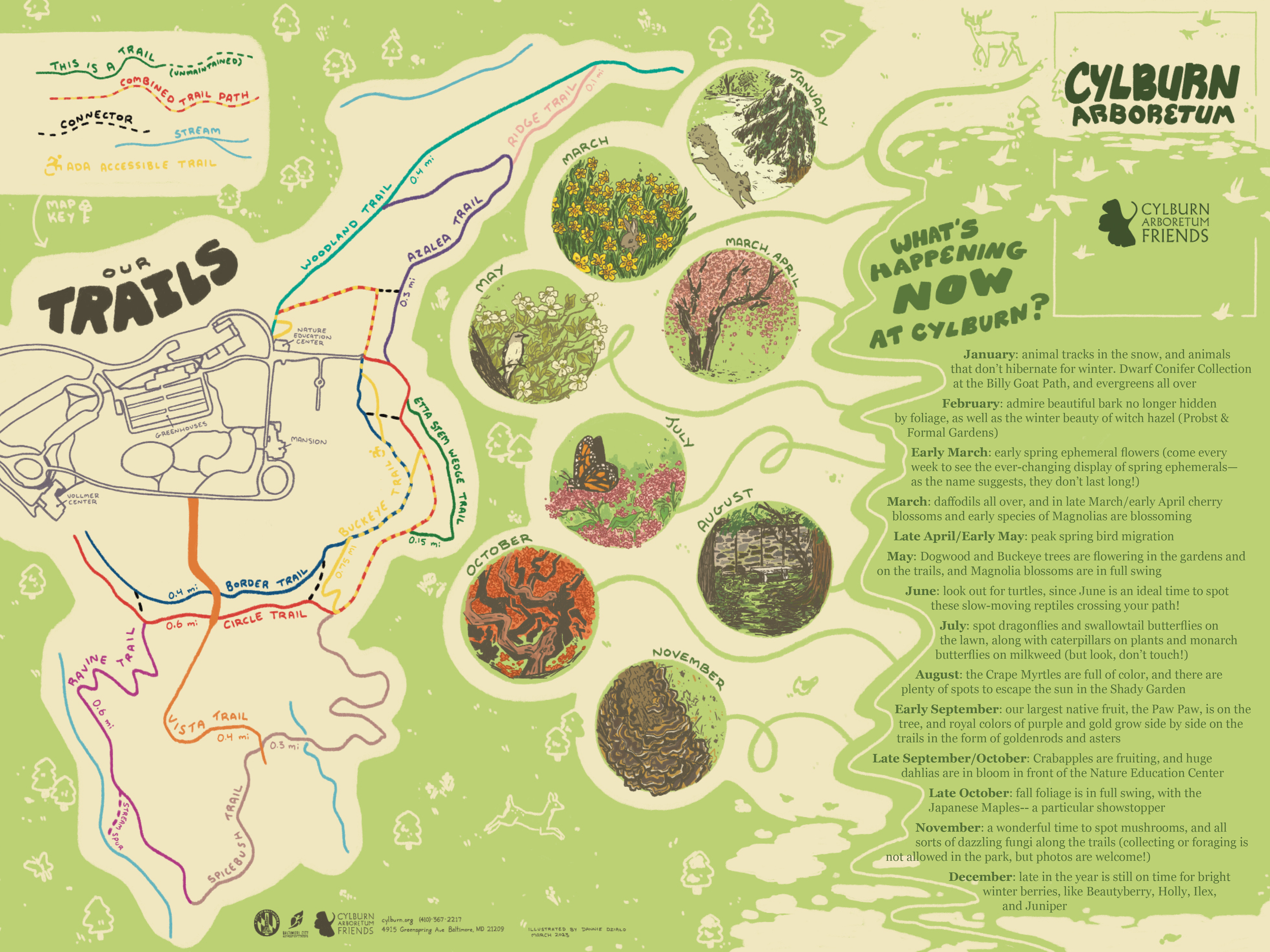 A 200-acre natural space in the heart of Baltimore, Maryland, Cylburn Arboretum is full of history and natural wonder alike. The Cylburn Arboretum Friends group sought a new map to properly evoke the fun and whimsy of their space, as well as create something more family-friendly for visitors.